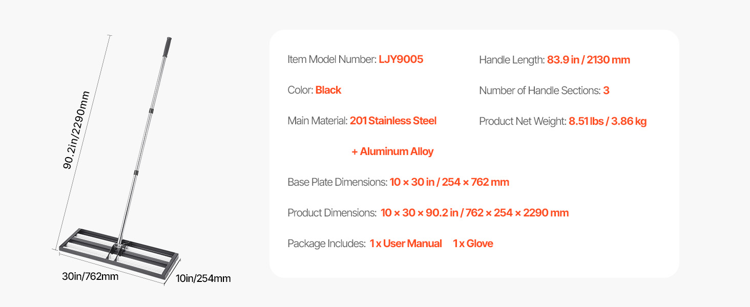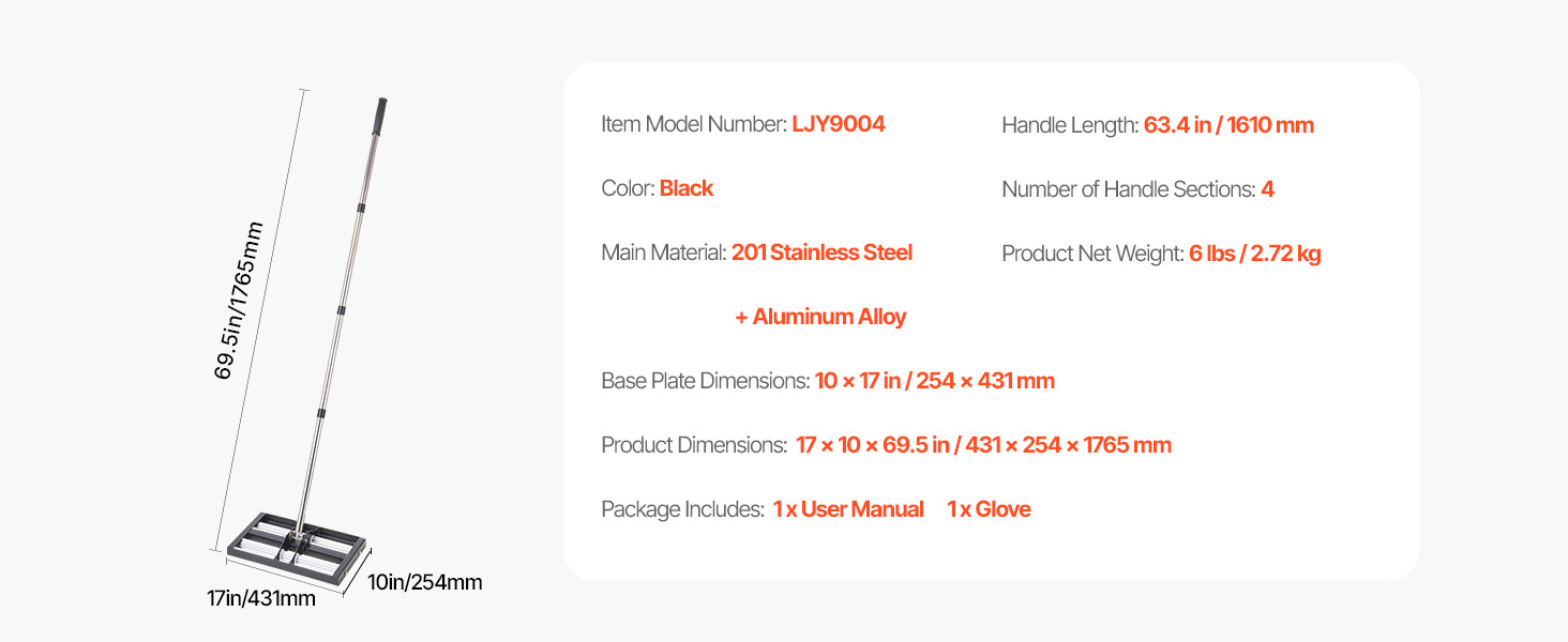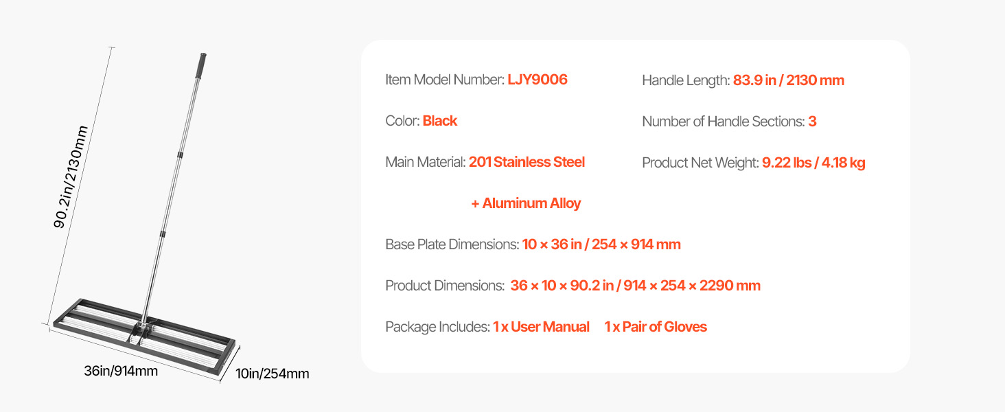 - Easy to Assemble: The package comes with an instruction manual and gloves, allowing you to quickly assemble and disassemble the soil leveler. Just align the handle threads, screw in and tighten, connect the base plate and fix it with bolts, and tighten with a wrench. The installation is simple and effortless.